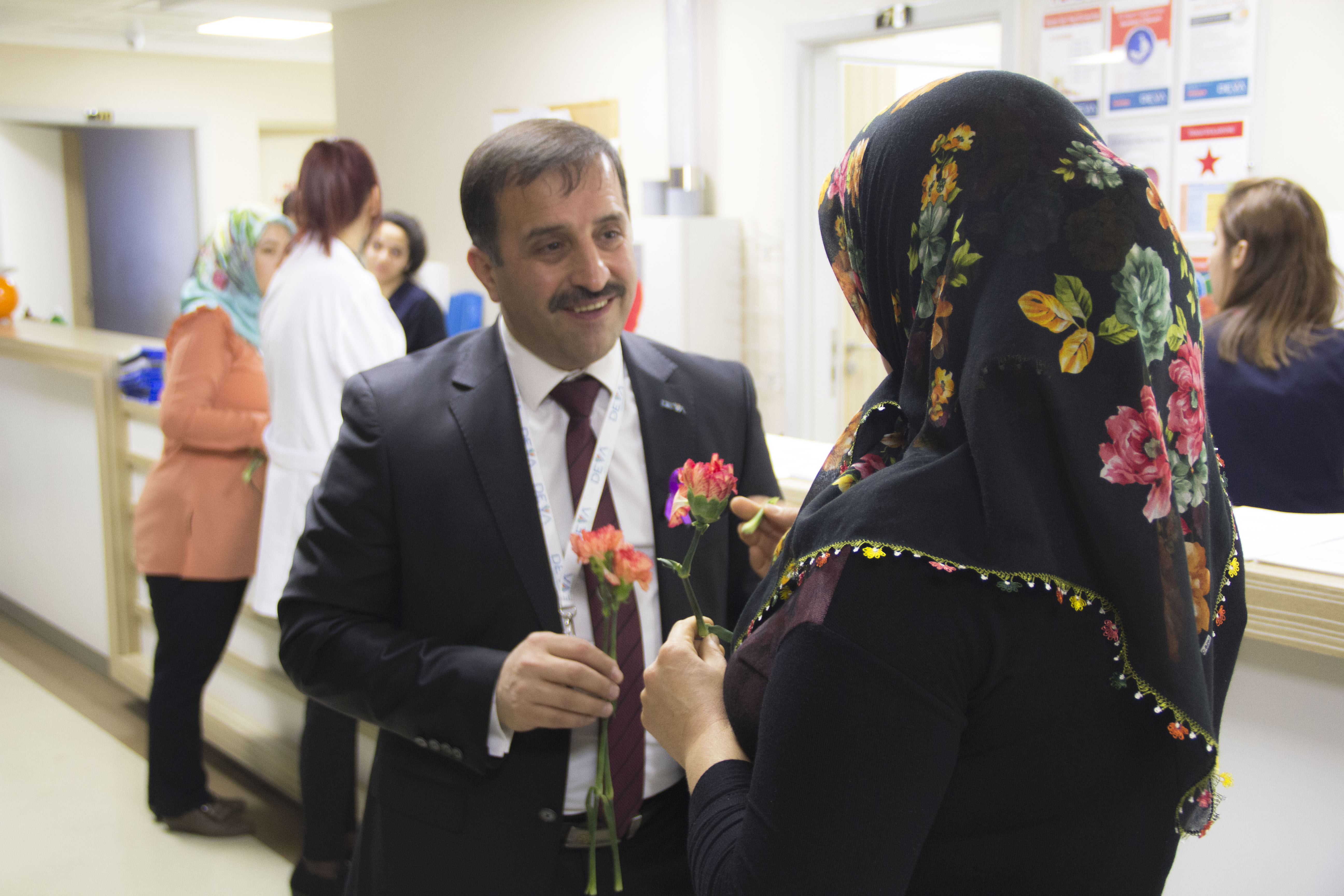 Yönetim Kurulu Başkanımız Sayın Beyhan TAHMAZOĞLU, Dünya Kadınlar gününü personellerimize,hastalarımıza ve ziyaretçilerimize çiçek vererek kutladı.